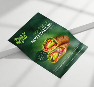 Návrh oboustranného letáku včetně úpravy, konzultace a mock upu.